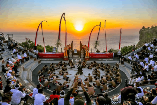 Complete your experience with the legendary Kecak Fire Dance performance. Watch as Balinese dancers perform an enchanting Hindu epic against a fiery sunset backdrop. The hypnotic chanting, swirling flames, and dramatic storytelling create an unforgettable cultural moment.